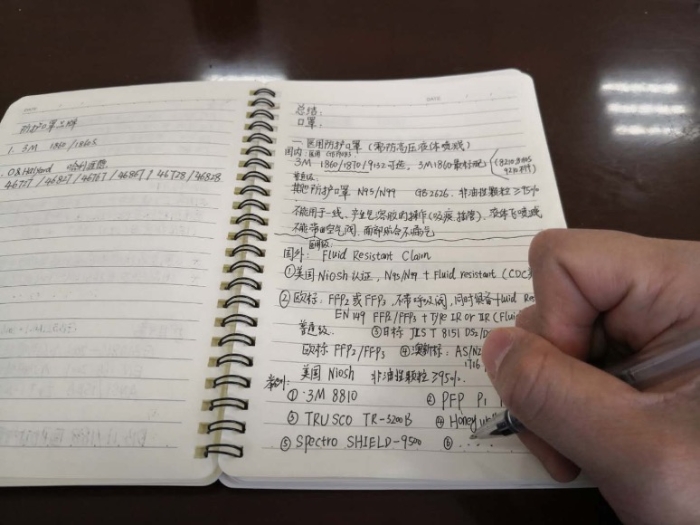 验收小组骨干专家廉华梳理医用物资相关标准的笔记。