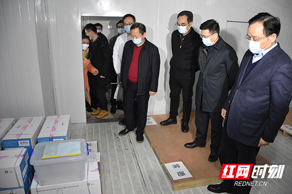 1月29日下午,检查组赴湖南省疾控中心,对新冠疫苗流通环节工作展开检查。