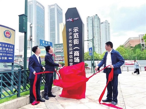 4月14日,长沙市化妆品诚信经营示范街(商场)(第一批)揭牌仪式举行,这是湖南省药品监管局通过化妆品诚信经营示范创建,从源头抓治理,从源头促监管的重要举措。