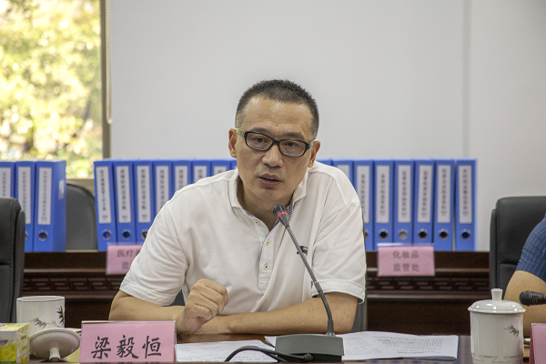 8月19日,省药品监管局党组书记梁毅恒率省局相关处室负责人一行,对长沙药品安全监管工作进行督导和调研。长沙市政协副主席、市市场监管局局长张庆和,市人民政府副秘书长卢兴映,市市场监管局党组书记周志辉参加调研。