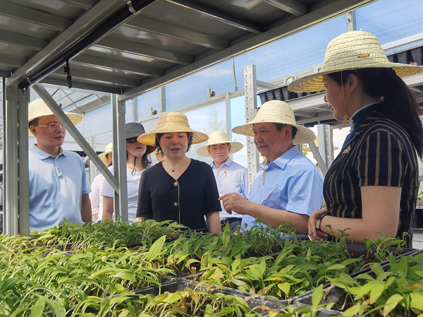 黄东红一行深入怀化林泉药业有限公司现场调研中药材种植基地、种子种苗园区及科研所、药材加工生产车间及仓储场地、雪峰山道地药材陈列馆及质控中心,并在林泉药业组织召开座谈会。