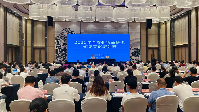 为认真贯彻执行《化妆品监督管理条例》等法规规章,进一步落实监管责任和企业主体责任,7月27日至28日,省药品监管局在长沙举办2023年全省化妆品法规知识宣贯培训班。局党组成员、副局长覃永忠出席开班仪式并讲话。省局相关处室、直属单位和各市州市场监管局的化妆品监管工作业务骨干,省化妆品安全专家库部分专家,部分化妆品注册人备案人、生产企业、经营单位以及行业协会代表,共260余人参加培训。