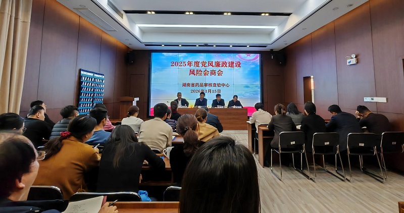 2026年1月15日,省药品审核查验中心(以下简称“核查中心”)组织召开2025年度党风廉政建设风险会商会,全体干部职工参加会议。省纪委监委驻省市场监管局纪检监察组副组长申一鸣到会指导,省药品监管局党组成员、副局长覃永忠出席会议并讲话。