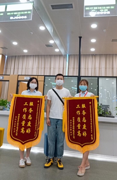 6月22日,湖南源康生物科技有限公司为省药监局驻省政务服务大厅窗口送来两面"服务态度好,工作质量高"的锦旗,对窗口工作人员杨婷媛、翟汝娟两位同志认真高效、热情周到的服务表示了高度赞扬和诚挚感谢。
