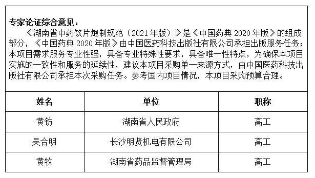 项目名称:湖南省药品监督管理局《湖南省中药饮片炮制规范(2021年版)》采购