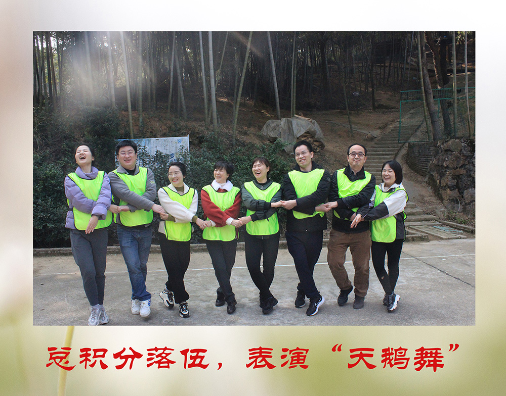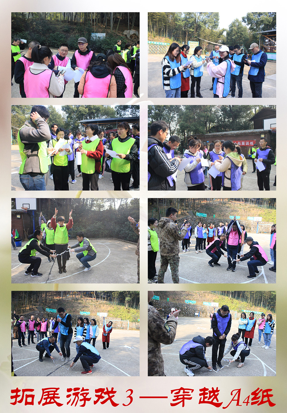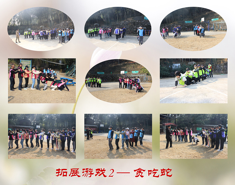 拓展训练紧张而激烈,大家忘记职务、年龄和性别,随机分为4个队,各队分别拟定了有趣的队名和响亮的口号,并进行风采展示,紧接着开始有趣的拓展游戏:有“教练说”、穿越A4纸、贪吃蛇和林中探险……经过几轮激烈的互动后,积分最少的队伍被罚跳“天鹅舞”。